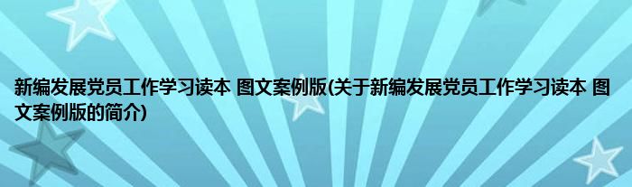 大家好,新编发展党员工作学习读本 图文案例版,关于新编发展党员工作学习读本 图文案例版的简介很多人还不知道,现在让我们一起来看看吧!