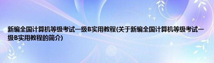 本文关于新编全国计算机等级考试一级B实用教程的简介就讲解完毕,希望对大家有所帮助。