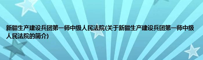 本文关于新疆生产建设兵团第一师中级人民法院的简介就讲解完毕,希望对大家有所帮助。