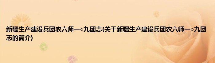 大家好,新疆生产建设兵团农六师一○九团志,关于新疆生产建设兵团农六师一○九团志的简介很多人还不知道,现在让我们一起来看看吧!