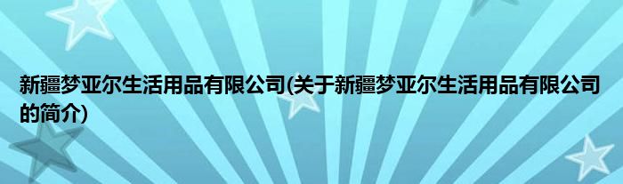本文关于新疆梦亚尔生活用品有限公司的简介就讲解完毕,希望对大家有所帮助。