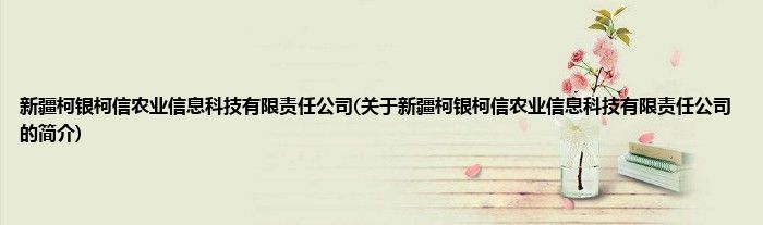 本文关于新疆柯银柯信农业信息科技有限责任公司的简介就讲解完毕,希望对大家有所帮助。