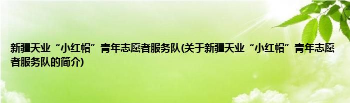 大家好,新疆天业“小红帽”青年志愿者服务队,关于新疆天业“小红帽”青年志愿者服务队的简介很多人还不知道,现在让我们一起来看看吧!