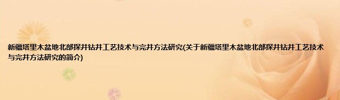 大家好,新疆塔里木盆地北部探井钻井工艺技术与完井方法研究,关于新疆塔里木盆地北部探井钻井工艺技术与完井方法研究的简介很多人还不知道,现在让我们一起来看看吧!