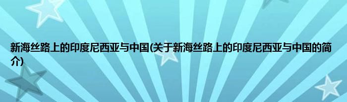 本文关于新海丝路上的印度尼西亚与中国的简介就讲解完毕,希望对大家有所帮助。