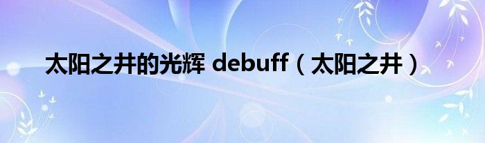 大家好,精选小编来为大家解答以上问题。太阳之井的光辉 debuff,太阳之井很多人还不知道,现在让我们一起来看看吧!