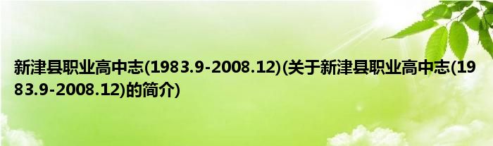 大家好,新津县职业高中志,1983.9-2008.12,关于新津县职业高中志,1983.9-2008.12的简介很多人还不知道,现在让我们一起来看看吧!