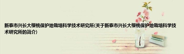 本文关于新泰市兴长大樱桃保护地栽培科学技术研究所的简介就讲解完毕,希望对大家有所帮助。