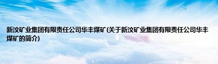 新汶矿业集团有限责任公司华丰煤矿(关于新汶矿业集团有限责任公司华丰煤矿的简介)