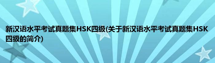 本文关于新汉语水平考试真题集HSK四级的简介就讲解完毕,希望对大家有所帮助。
