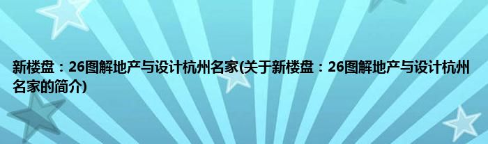 大家好,新楼盘:26图解地产与设计杭州名家,关于新楼盘:26图解地产与设计杭州名家的简介很多人还不知道,现在让我们一起来看看吧!