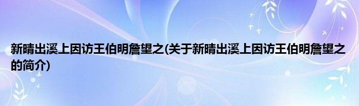 本文关于新晴出溪上因访王伯明詹望之的简介就讲解完毕,希望对大家有所帮助。
