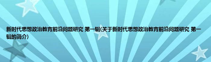 本文关于新时代思想政治教育前沿问题研究 第一辑的简介就讲解完毕,希望对大家有所帮助。