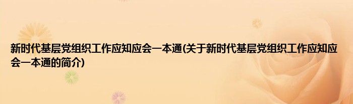 本文关于新时代基层党组织工作应知应会一本通的简介就讲解完毕,希望对大家有所帮助。
