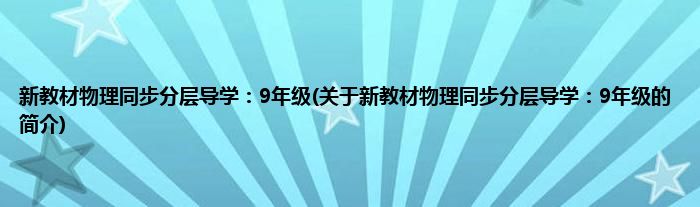 本文关于新教材物理同步分层导学:9年级的简介就讲解完毕,希望对大家有所帮助。