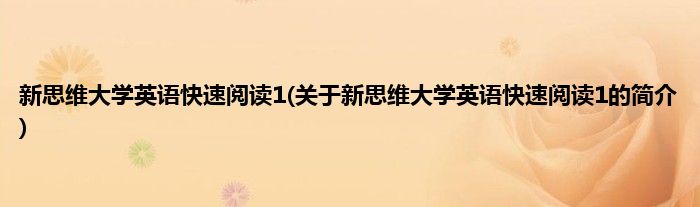 本文关于新思维大学英语快速阅读1的简介就讲解完毕,希望对大家有所帮助。