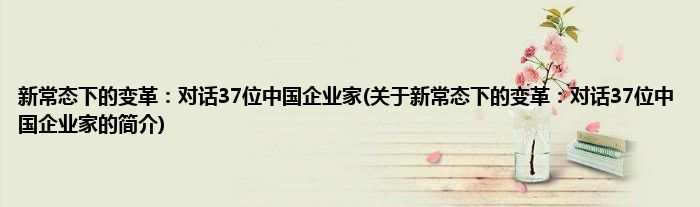 大家好,新常态下的变革:对话37位中国企业家,关于新常态下的变革:对话37位中国企业家的简介很多人还不知道,现在让我们一起来看看吧!