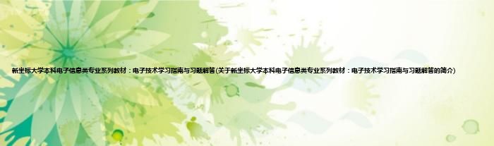 本文关于新坐标大学本科电子信息类专业系列教材:电子技术学习指南与习题解答的简介就讲解完毕,希望对大家有所帮助。