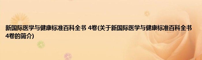 本文关于新国际医学与健康标准百科全书 4卷的简介就讲解完毕,希望对大家有所帮助。