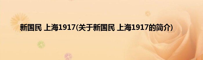 大家好,新国民 上海1917,关于新国民 上海1917的简介很多人还不知道,现在让我们一起来看看吧!