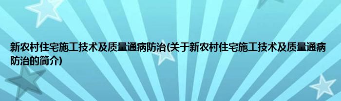 本文关于新农村住宅施工技术及质量通病防治的简介就讲解完毕,希望对大家有所帮助。
