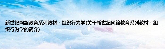 本文关于新世纪网络教育系列教材:组织行为学的简介就讲解完毕,希望对大家有所帮助。