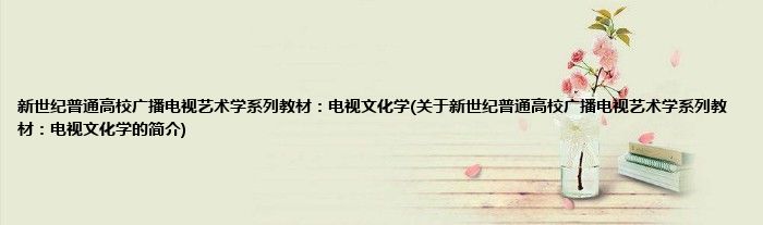 本文关于新世纪普通高校广播电视艺术学系列教材:电视文化学的简介就讲解完毕,希望对大家有所帮助。