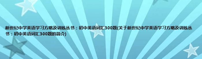本文关于新世纪中学英语学习方略及训练丛书:初中英语词汇300题的简介就讲解完毕,希望对大家有所帮助。