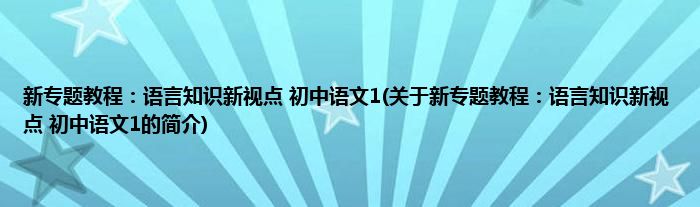 新专题教程:语言知识新视点初中语文1(关于新专题教程:语言知识新视点初中语文1的...