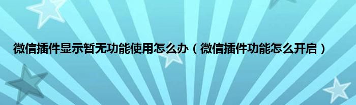 大家好,精选小编来为大家解答以上问题。微信插件显示暂无功能使用怎么办,微信插件功能怎么开启很多人还不知道,现在让我们一起来看看吧!