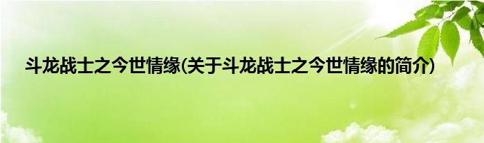 本文关于斗龙战士之今世情缘的简介就讲解完毕,希望对大家有所帮助。