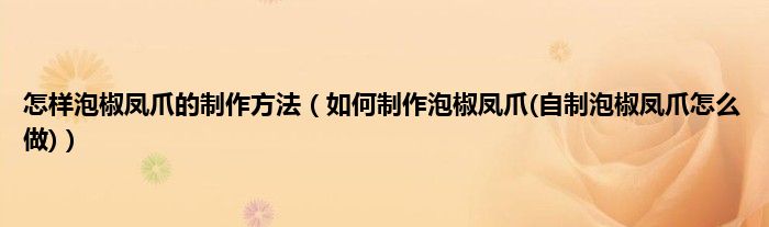 大家好,小科来为大家解答以上问题。怎样泡椒凤爪的制作方法,如何制作泡椒凤爪(自制泡椒凤爪怎么做)很多人还不知道,现在让我们一起来看看吧!