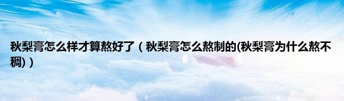 大家好,小科来为大家解答以上问题。秋梨膏怎么样才算熬好了,秋梨膏怎么熬制的(秋梨膏为什么熬不稠)很多人还不知道,现在让我们一起来看看吧!
