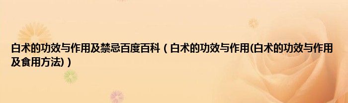 大家好,小科来为大家解答以上问题。白术的功效与作用及禁忌百度百科,白术的功效与作用(白术的功效与作用及食用方法)很多人还不知道,现在让我们一起来看看吧!