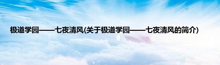 本文关于极道学园——七夜清风的简介就讲解完毕,希望对大家有所帮助。