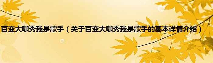 本文关于百变大咖秀我是歌手的基本详情介绍就讲解完毕,希望对大家有所帮助。