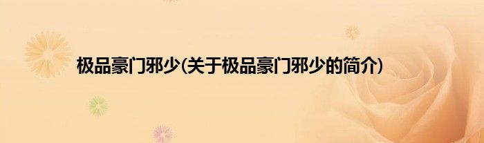 极品豪门邪少(关于极品豪门邪少的简介)