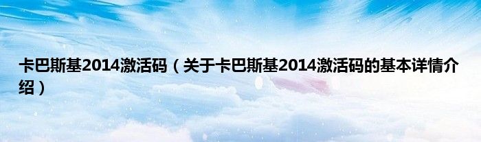 本文关于卡巴斯基2014激活码的基本详情介绍就讲解完毕,希望对大家有所帮助。