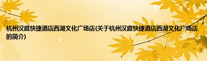本文关于杭州汉庭快捷酒店西湖文化广场店的简介就讲解完毕,希望对大家有所帮助。