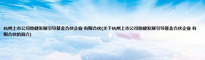 大家好,杭州上市公司稳健发展引导基金合伙企业 有限合伙,关于杭州上市公司稳健发展引导基金合伙企业 有限合伙的简介很多人还不知道,现在让我们一起来看看吧!