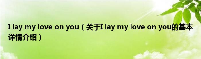 I lay my love on you(关于I lay my love on you的基本详情介绍)