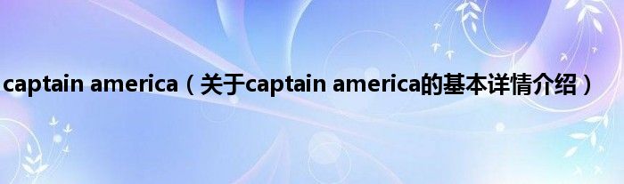 本文关于captain america的基本详情介绍就讲解完毕,希望对大家有所帮助。