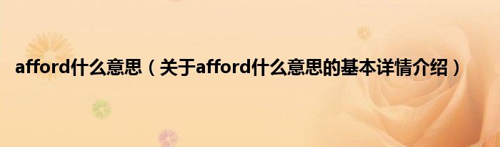 本文关于afford什么意思的基本详情介绍就讲解完毕,希望对大家有所帮助。