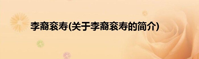 李裔衮寿(关于李裔衮寿的简介)