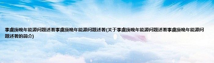 本文关于李虞庚晚年能源问题述著李虞庚晚年能源问题述著的简介就讲解完毕,希望对大家有所帮助。
