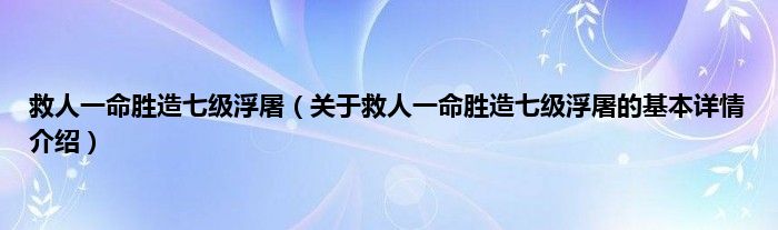 本文关于救人一命胜造七级浮屠的基本详情介绍就讲解完毕,希望对大家有所帮助。