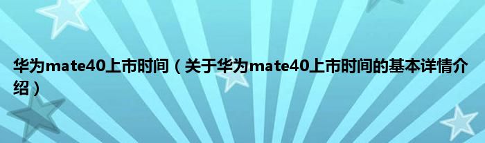 本文关于华为mate40上市时间的基本详情介绍就讲解完毕,希望对大家有所帮助。