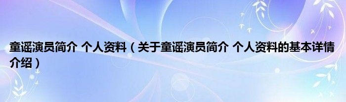 本文关于童谣演员简介 个人资料的基本详情介绍就讲解完毕,希望对大家有所帮助。