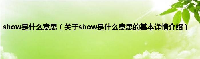 本文关于show是什么意思的基本详情介绍就讲解完毕,希望对大家有所帮助。