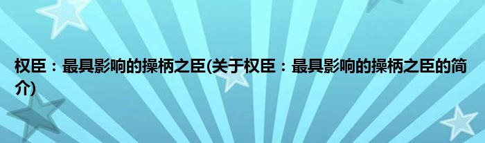本文关于权臣:最具影响的操柄之臣的简介就讲解完毕,希望对大家有所帮助。
